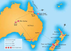 on your unforgettable South Pacific adventure. Cities you will visit while on tour include Auckland, Rotorua, Christchurch, Mt Cook, Queenstown, Milford Sound, Franz Josef Glacier, Sydney, Melbourne, Alice Springs, Ayers Rock, Cairns, Dunk Island and more. |
